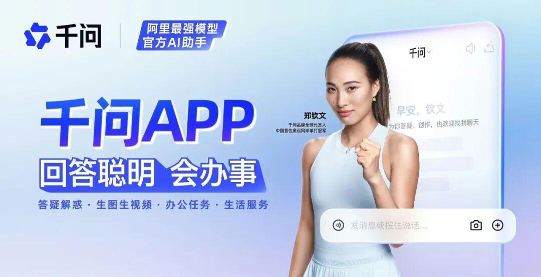 在这样的背景下,本周,阿里千问正式官宣郑钦文成为其品牌代言人。